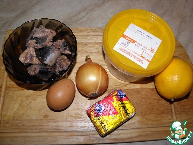 - Консервы рыбные (240г, сардины в масле, можно заменить другой похожей рыбкой (можно и в с.с.)) — 1 бан.