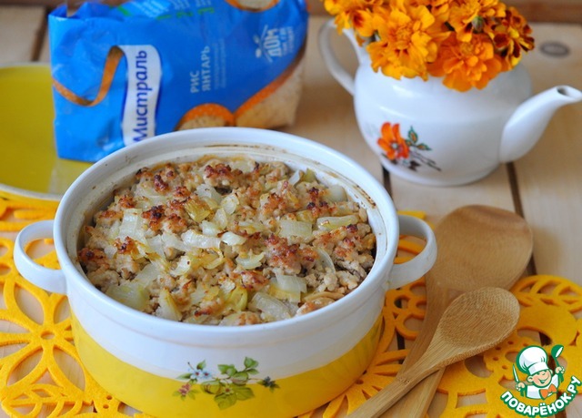 Накрываем крышкой (или фольгой), ставим в нагретую до 220 градусов духовку, готовим 20 минут. Далее крышку (фольгу) убираем и доводим до готовности ещё 20 минут, чтобы фарш подрумянился. -