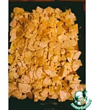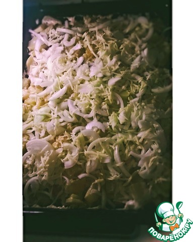Через час достать, посыпать нерезаным луком и сыром и отправить до готовности примерно на 30минут.
