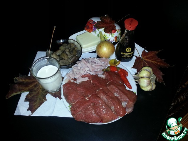 Ингредиенты для «Говядина под сливочно-грибным соусом»:
