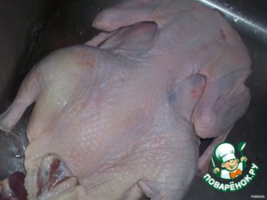 Утку выпотрошить, помыть, натереть солью и перцем, дать 2 часа постоять.