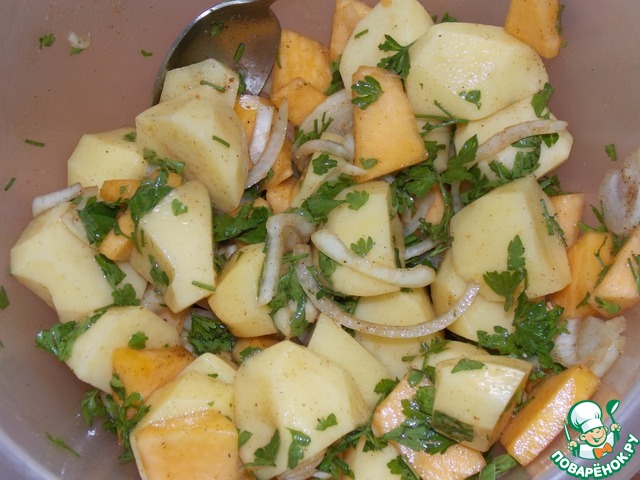 Рецепт «Картофель с тыквой, запечённый в пакете»: