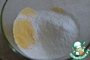 Кукурузную и рисовую муку просеять в чашку с разрыхлителем.