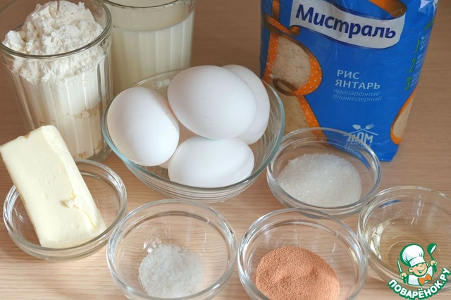 Ингредиенты для «Сдобный пирог с рисом и яйцом»: