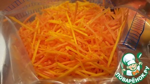 Натереть на тёрке для корейской моркови овощи. Сложить в плотный пакет, желательно с зипом или миску.