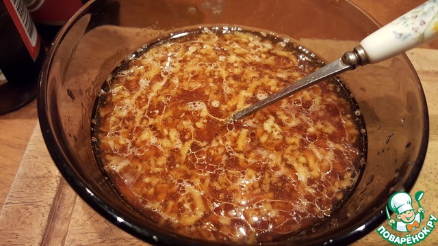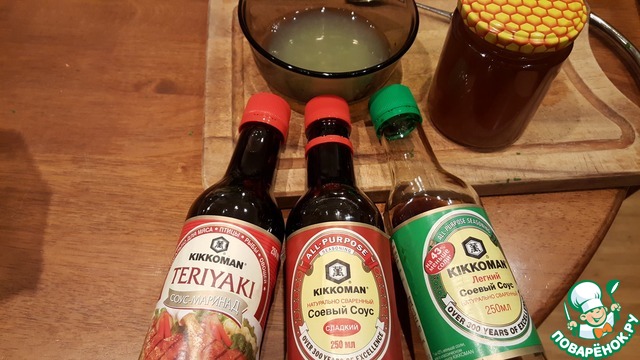Выжать сок одного лимона. Добавить к соку соевые соусы и мёд.