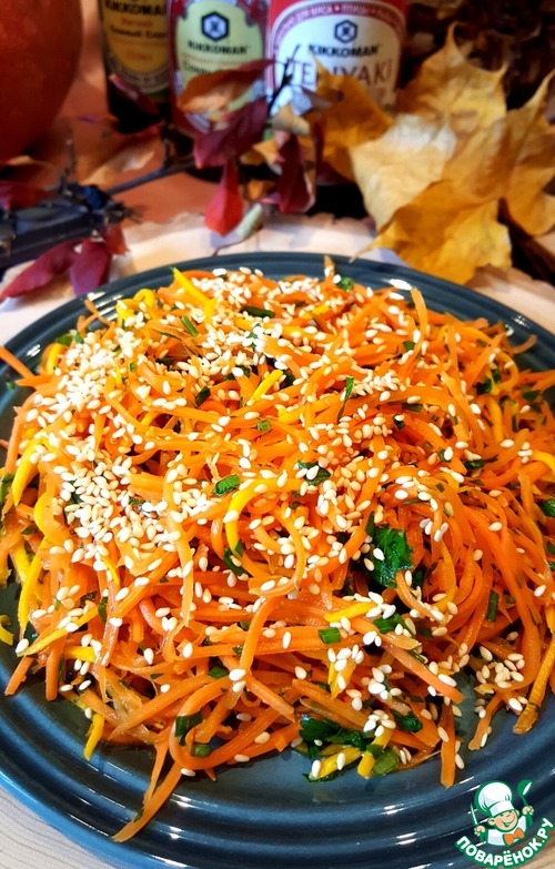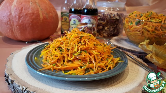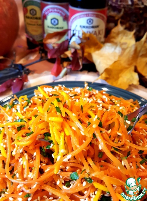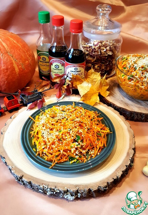 Сладкая осенняя морковь, кусочек полезной и вкусной тыквы, специи и замечательные соусы от ТМ Киккоман. Прекрасная закуска или быстрый салат... как пожелаете и на что хватит терпения... Угощайтесь!!!