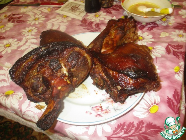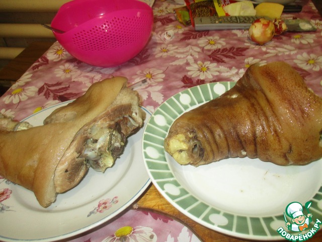Рульки сварились, вытаскиваем их из воды на тарелку и даем немного остыть.