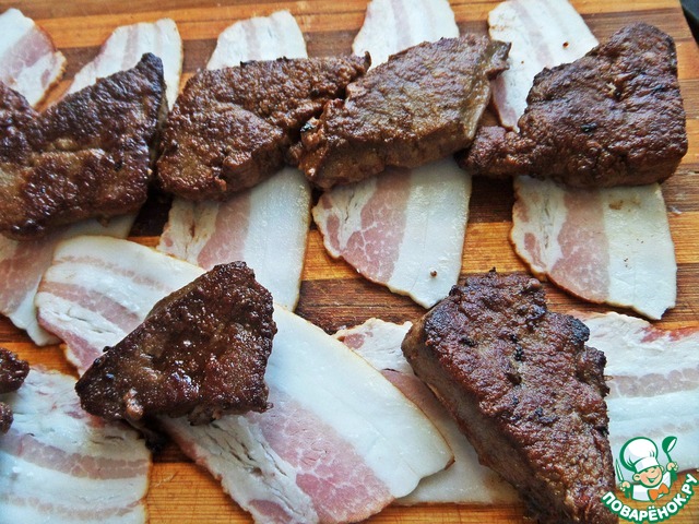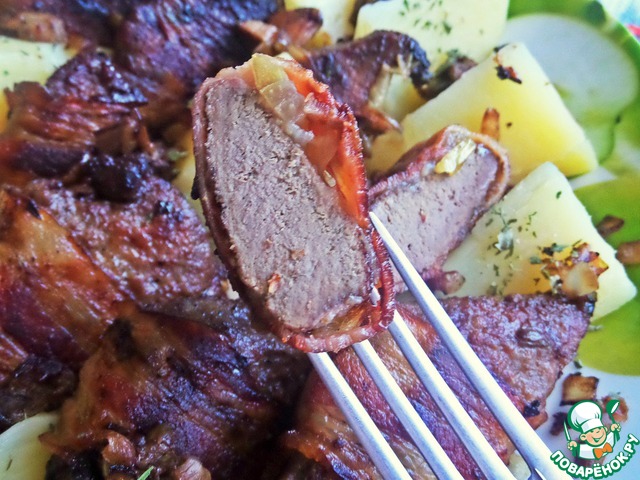 В беконе можно завернуть и запечь много чего: филе, куриные ножки, овощи и даже котлету! Сегодня попробуем соединить его с печёнкой. Получилось очень вкусно, удобно взять с собой на работу или пикник и с аппетитом перекусить-сытно.