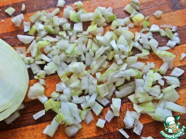 Пока печёнка готовилась, я нарезала мелко оставшийся лук.