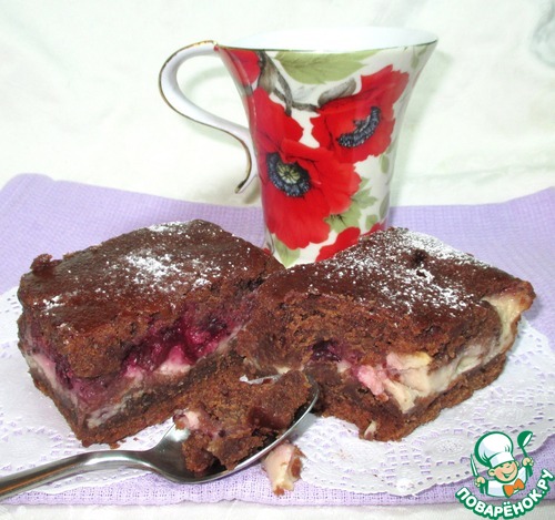 Заливной пирог. Влажный шоколадный..., прослойка из пудинга с кислинкой чёрной смородины... и готовится не сильно хлопотно.