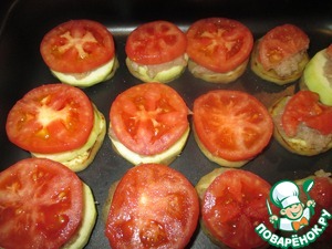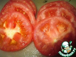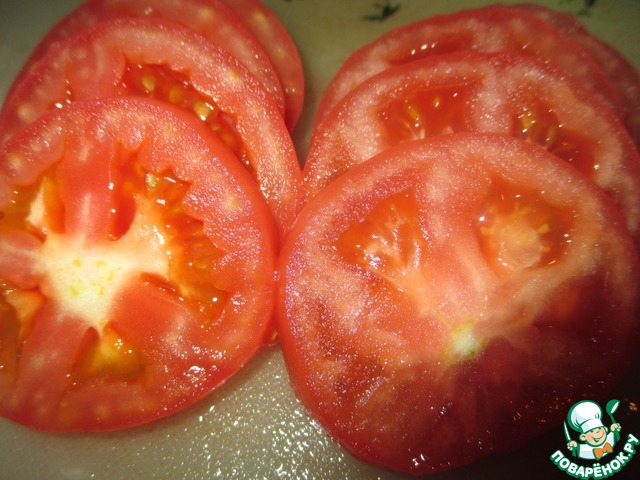 Сверху положить кружочки помидоров. Присолить.