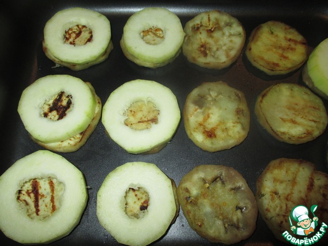 На баклажаны выложить кабачки.