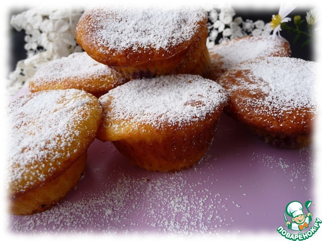 Рецепт «Творожные маффины с малиновым конфитюром»: