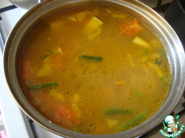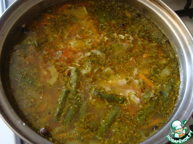 Рецепт «Суп рисовый с зелёной фасолью»: