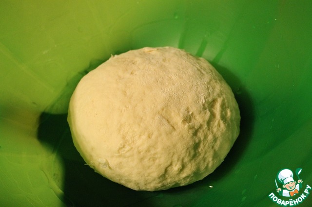 Скатать тесто в шар и положить в миску смазанную 1 ч. л. растительного масла.