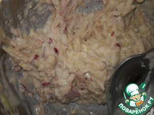 Натереть яблоки на крупной терке, добавить яйцо, соль, сахар, муку и соду и замесить ложкой тесто. Тесто должно быть очень густое, что бы с ложки не стекало, но не крутое. Муки может потребоваться больше или меньше чем в ингредиентах, все зависит от яблок (ориентируйтесь на тесто см. фото).
