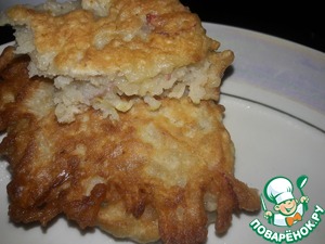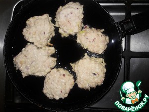 Далее разогреваем сковороду, наливаем немного растительного масла, ставим маленький огонь, и выкладываем мокрой ложкой наши аладьи. Жарим до румяного состояния с обеих сторон.