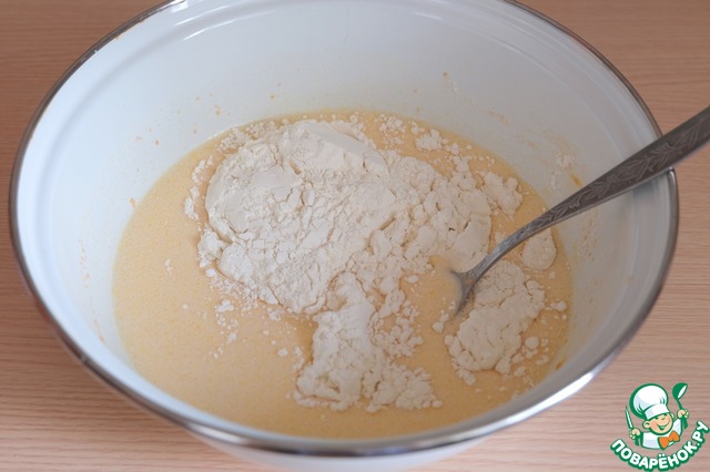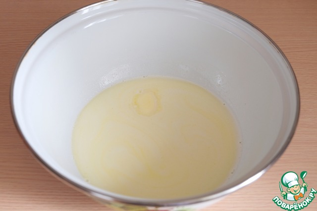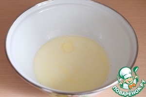 В слегка теплую смесь добавить яичный желток (1 шт.), яйцо (1 шт.), добавить сахар (2 ст. ложки).