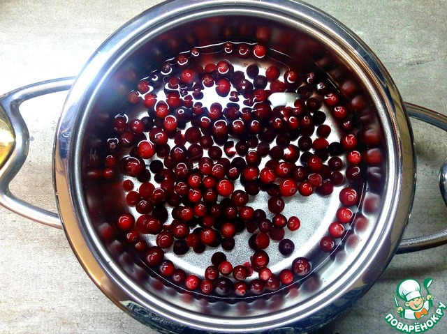 В сотейник Zepter налить воду, добавить промытые ягоды клюквы.