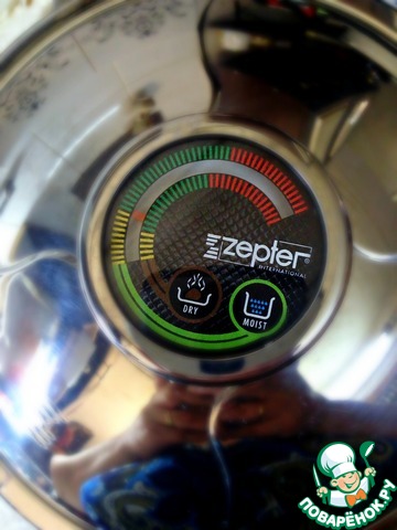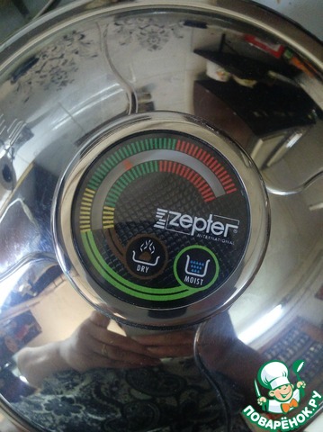 Как только стрелочка термоконтроллера достигнет середины зеленого поля, огонь выключаем и оставляем на 10-15 минут в сотейнике, не открывая крышку.