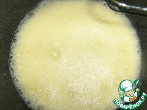 КРЕМ: на водяной бане размешать 3 белка и 3 столовые ложки сахара. Взбить до устойчивых пиков.