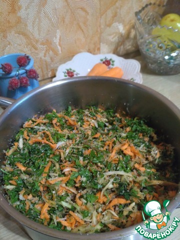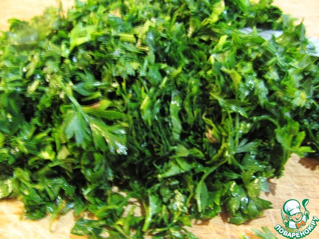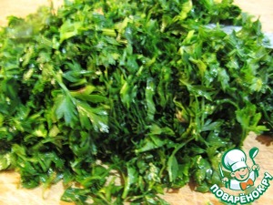 Зелень петрушки так же нарезаем и отправляем к моркови с корнем петрушки.