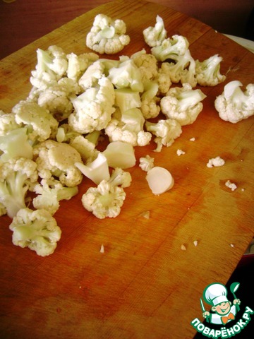 Бульон довести до кипения и выложить в него кубики корневого сельдерея, дать повариться пару минут и добавить мелкие соцветия капусты. Всыпать пшено и варить на огне ниже среднего 7 минут.