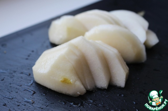 Грушу очистить от кожуры и сердцевины и нарезать небольшими дольками.