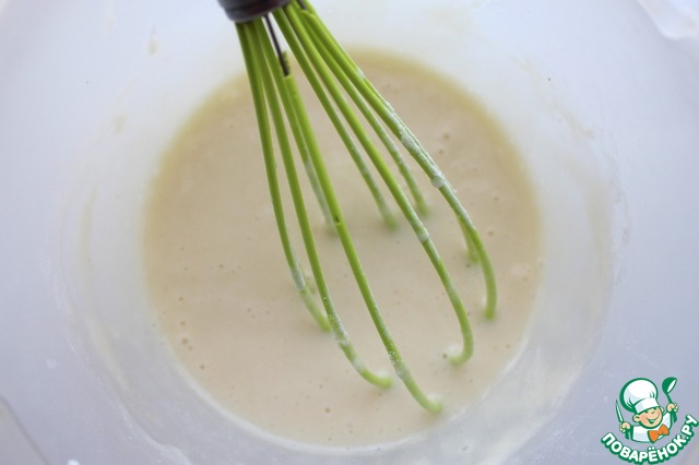 Добавить сухие ингредиенты к жидким и тщательно перемешать.