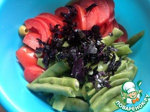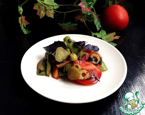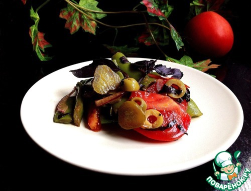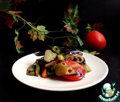 Вкусный, пикантный салат из овощей и зеленой фасоли. Салат простой, красивый и легкий. Угощайтесь!