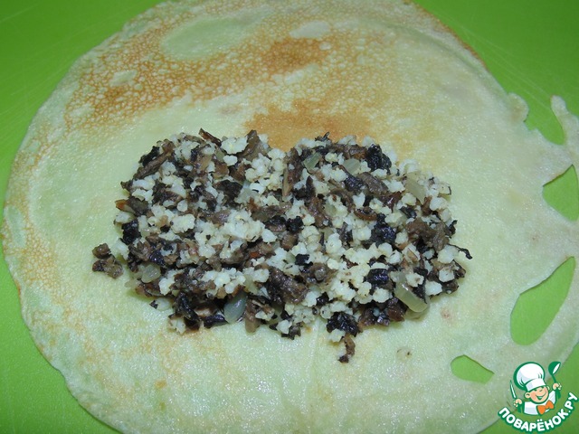 Рецепт «Блинчики с пшеном, жареным луком и грибами»: