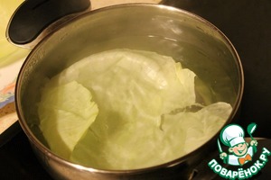 Листья капусты бланшировать в подсоленной воде 2-3 минуты. Остудить.