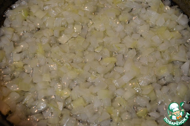 Нарезаем лук мелким кубиком, обжариваем на растительном масле до прозрачности. |