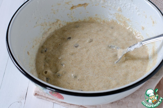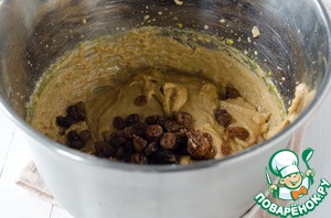 Изюм отжать и добавить в тесто, хорошо перемешать.