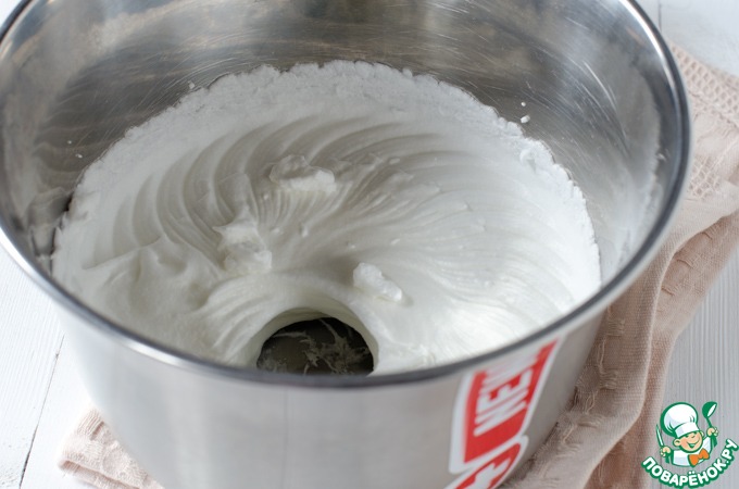 Белки взбить до твердых пиков.