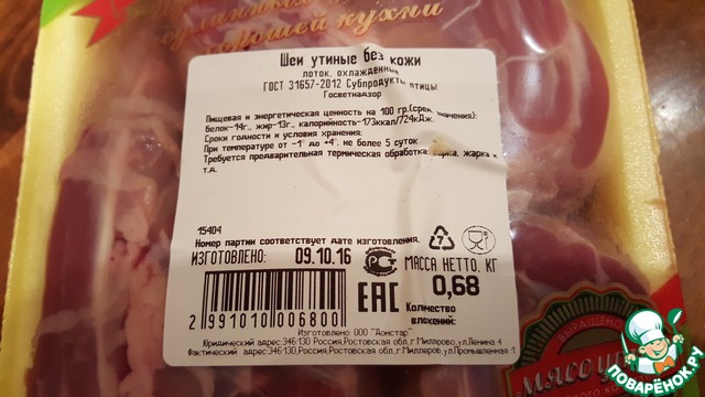 я писала что такого блюда мне не видать.не продают шейки у нас