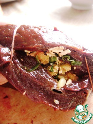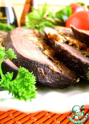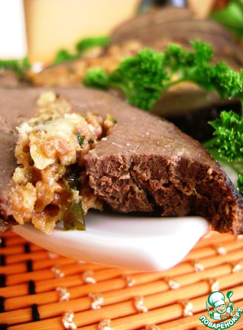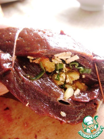 Довольно давно мне попался на глаза рецепт печени, фаршированной по-балкански. Рецепт вызвал удивление и желание попробовать. После пробы я готовлю фаршированную печень регулярно, импровизируя с начинками. Это очень вкусно, необычно и красиво выглядит на столе. К тому же неизменно вызывает удивление и одобрение гостей, даже тех, кто не слишком любит печень.