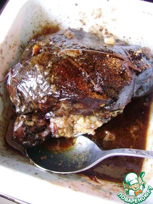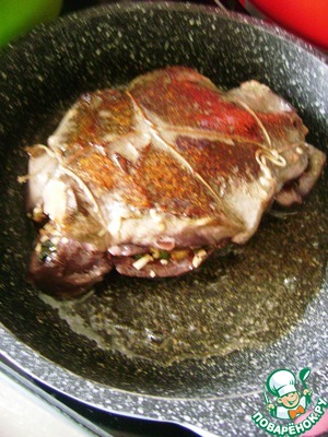 Пару раз перевернуть печень и полить соком. Готовность печени определить проколом –сок должен быть прозрачным.