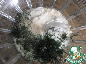 Яйца не много взбиваем венчиком, вводим к ним сметану, майонез, соль и рубленную зелень укропа. Так же тщательно взбиваем все венчиком.