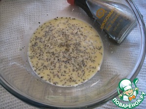 Яйца со сметаной взбейте, добавьте базилик и соевый соус.