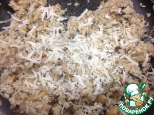 Добавляем сливочное масло. Сверху натираем пармезан, перемешиваем.