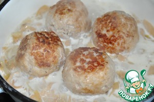 Заливаем смесью бульона и сливок. Можете брать любой бульон по желанию: грибной, мясной, овощной или даже просто воду. Доводим смесь до кипения и тушим 10 минут на медленном огне до загустения соуса.