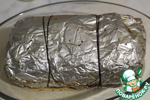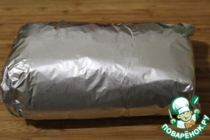 Поскольку у меня, как я уже писала выше, была рулька коротенькая, то я выложила ее на несколько слоев фольги и очень плотно закрутила, плотно прижав по бокам.