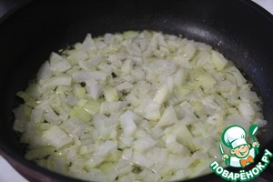 В сливочном и растительном масле обжарить очищенный и нарезанный кубиком лук - просто протомить, не надо зажаривать! -