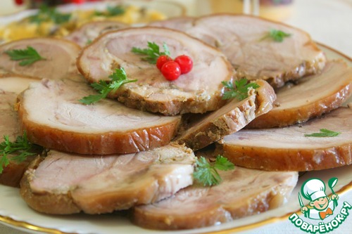 У меня была не очень подходящая рулька - толстенькая, но в длину маленькая - совсем не удобная для рулета, но когда нас останавливали трудности))) -