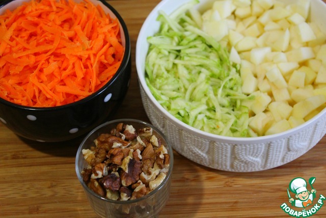 - Орехи грецкие (крупно нарезанные) — 0.5 стак.