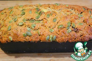 Это поистинне восхитительный осенний кекс полностью соответствует своему названию - бархатный, насыщенный, в меру влажный, рассыпчатый, с кусочками грецких орехов, с легкой кислинкой вяленой клюквы, нежностью кабачка, рыжиной моркови, сочностью яблок, с тонкой пикантной ноткой сладкого соевого соуса "Киккоман" - он здесь не заменяет часть сахара, а дает неповторимый вкус, со вкусом тыквенных семечек- одним слово Осенний. Кекс сытный, но очень легкий. Он очень сбалансирован по вкусу - никто не догадается, что основные ингредиенты овощи и яблоки. Пробуем?