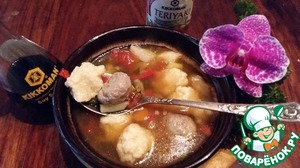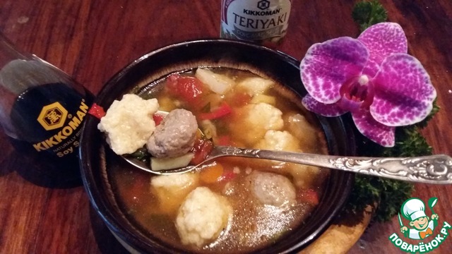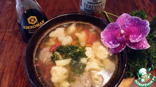 Очень вкусный, легкий и ароматный супчик с мясными и сырными фрикадельками. Благодаря добавлению соевого соуса от ТМ "Киккоман" обретает новое звучание!