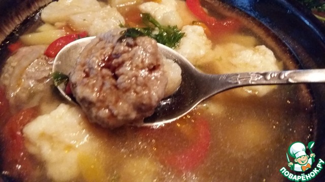 Рецепт «Суп с мясными и сырными фрикадельками»:
